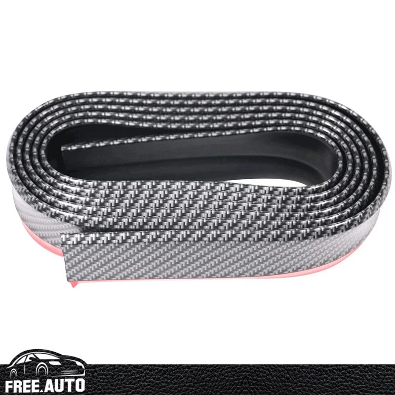 FREE-AUTO802 Universal Fitment Carbon Fiber Look Adhesive Strips Front Bumper Rubber Lip 98In