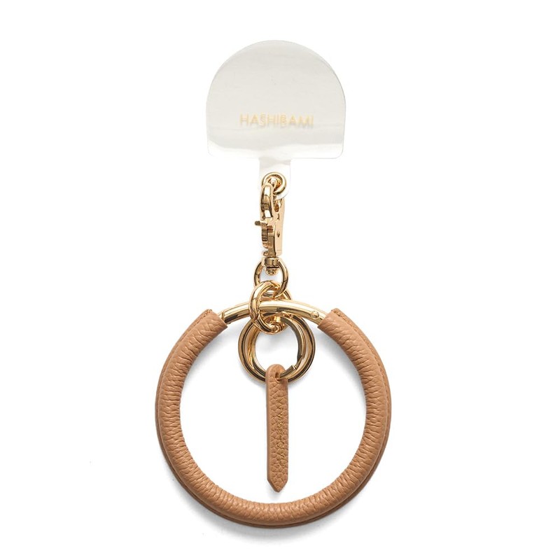 [ハシバミ] キーチェーン レザー大丸ナスカンスマホリング チャイ FREE