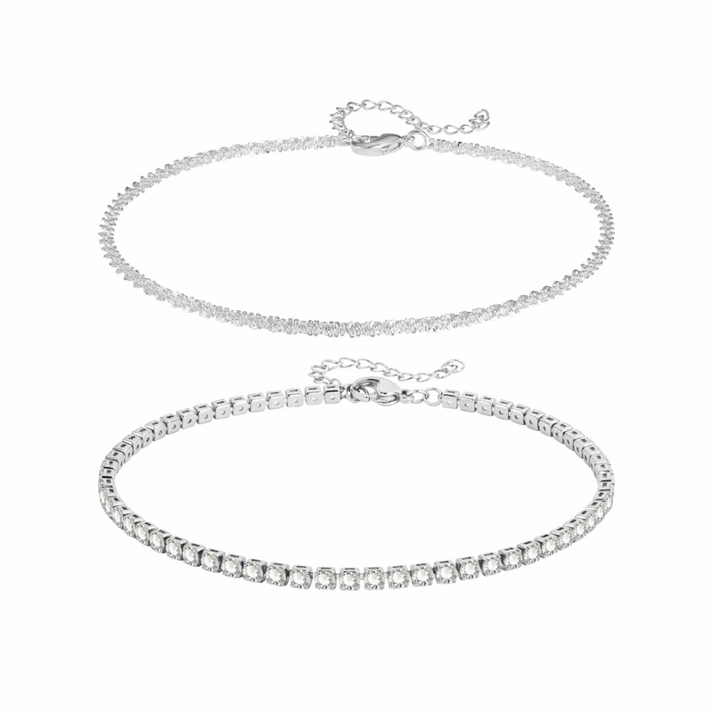 - Silver Stacked Ankle Bracelets for Women