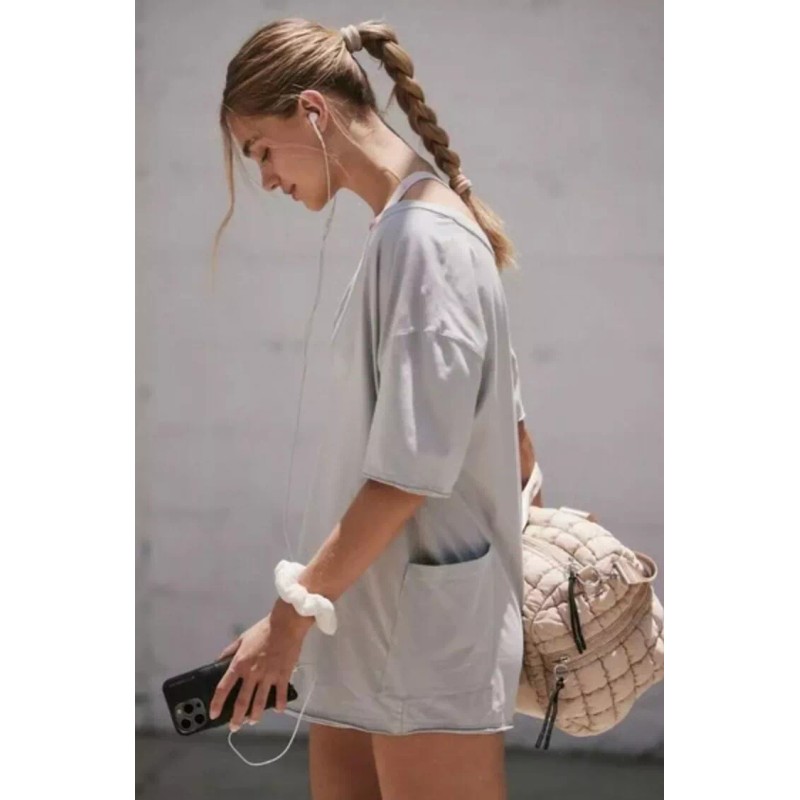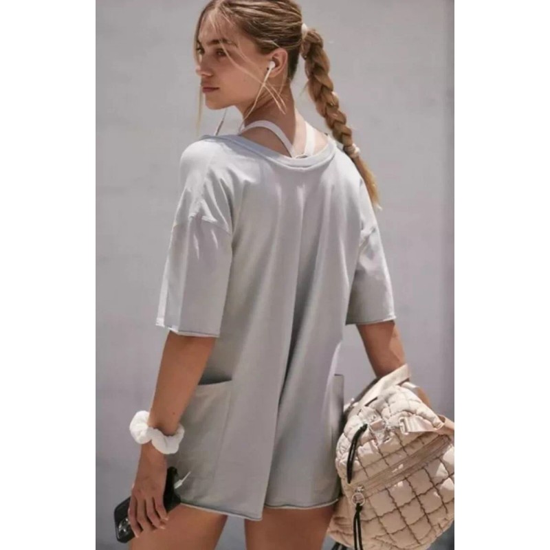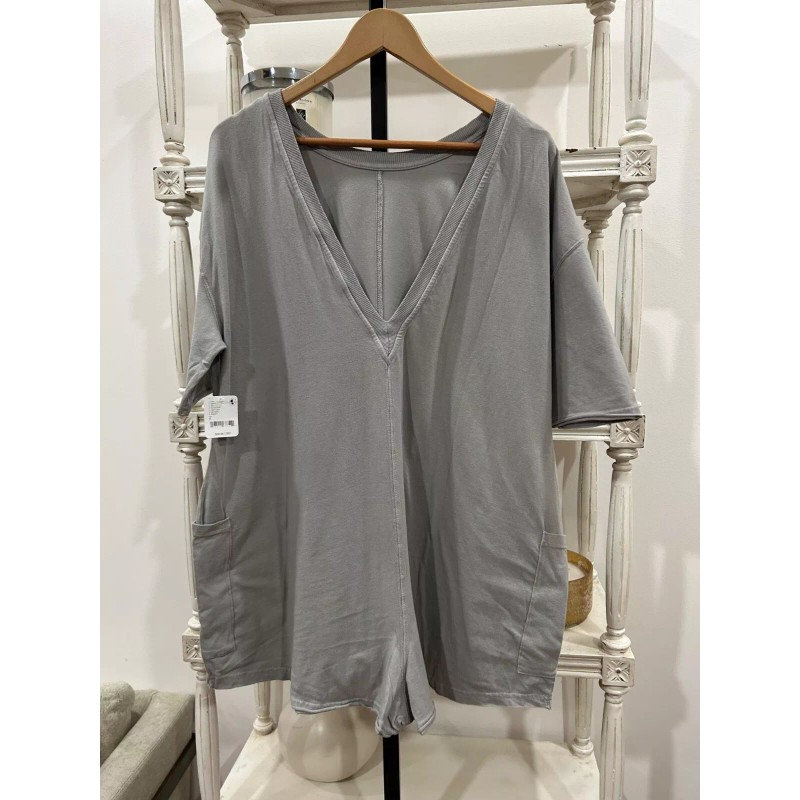 Free People Hot Shot Tee Romper One Piece in Beach Fog Size Medium