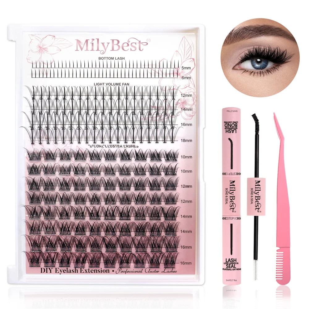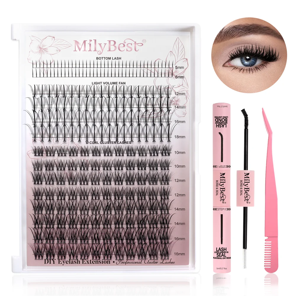 Free Shipping US Local Stock D Curl Lash Clusters Bulk Volume Cluster Eye Lashes KitFalse Eyelashes Style: Natural, length: Mix, package: H08