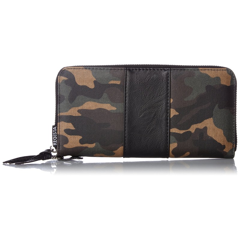 [レジスタ] 財布 メンズ 長財布 ラウンドファスナー キャンバス コーティング加工 黒 迷彩 Free Size