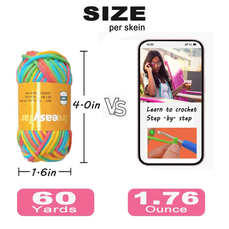 • Premium Material: The freeasyfar beginner yarn is crafted from high-quality, ultra-soft cotton and nylon fibers, the beginner easy yarn ensures a smooth and enjoyable crafting experience, and won't split, fray, or snag, it provides a smooth, modern finish for your project; and also it is versatile and adaptable, perfect for knitting, crocheting, allowing you to explore various techniques and projects; From making amigurumi toys and plushies to crafting accessories, blankets, and garments, the possibilities are endless. Let your imagination run wild with this multi-purpose yarn.