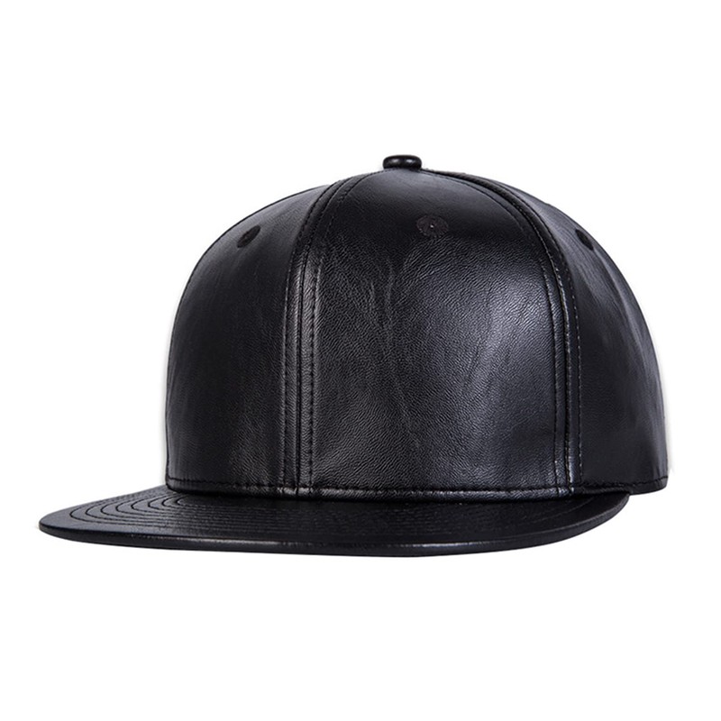 FREEBIRD99 Faux Leather Flat Bill Brim Hip Hop Baseball Cap Ajustable Snapback Hat (Black)