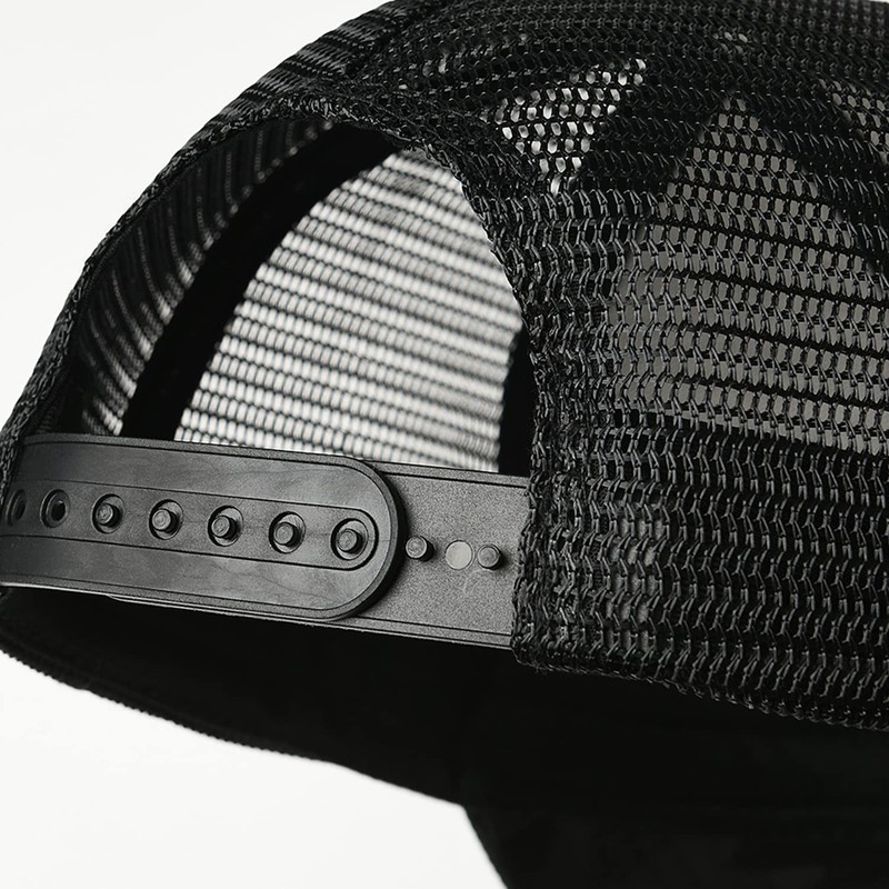 - Trucker cap with mesh back and adjustable snapback with low profile design.