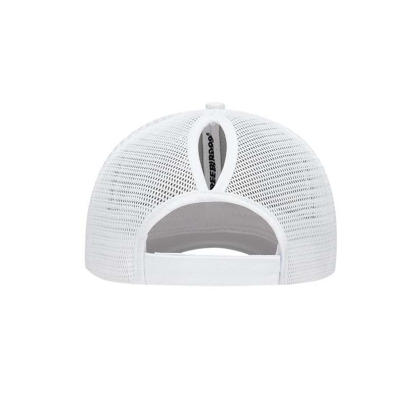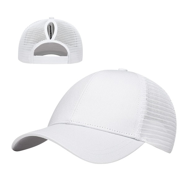 FREEBIRD99 Ponycap Messy High Bun Ponytail Baseball Cap Adjustable Mesh Trucker Hat for Women (White)