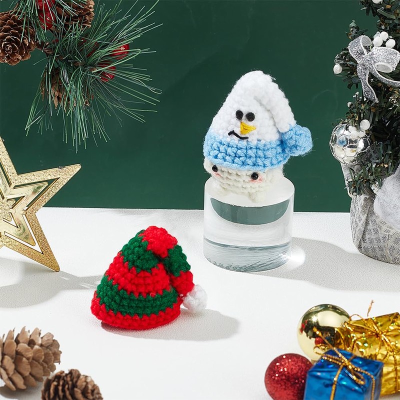 FREEBLOSS 12 Set Crochet Hat Kit Crochet Keychain Kit Christmas Crochet Kit Crochet Starter Kit with with Step by Step Video Tutorial Christmas Ornament for Christmas Tree Crochet Hat Keychains