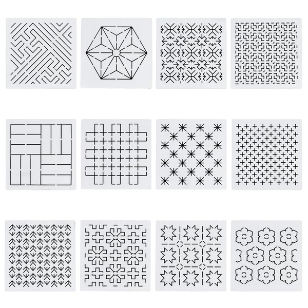 - Sufficient Quantity: There are 12 sashiko templates in the package, 12 different classic Japanese patterns to meet your different sewing needs.