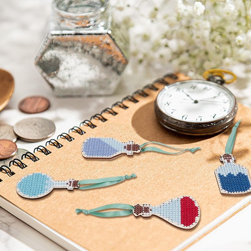 FREEBLOSS 16 Set Christmas Potion Wooden Cross Stitch Kit Hand Sewing Kits Arts & Crafts Kit 4 Styles Embroidery Wooden Cross Stitch Blanks Set Stamped Cross Stitch Kits for Beginners