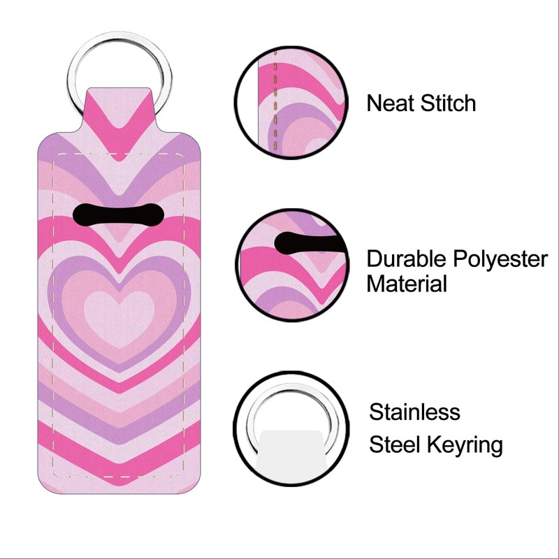 FREEBLOSS 2Pcs Chapstick Holder Keychain Lip Balm Holder Keychain Lightweight Lipstick Sleeve Pouch with Pink Heart Pattern for Women Girls 1.5x3.8''