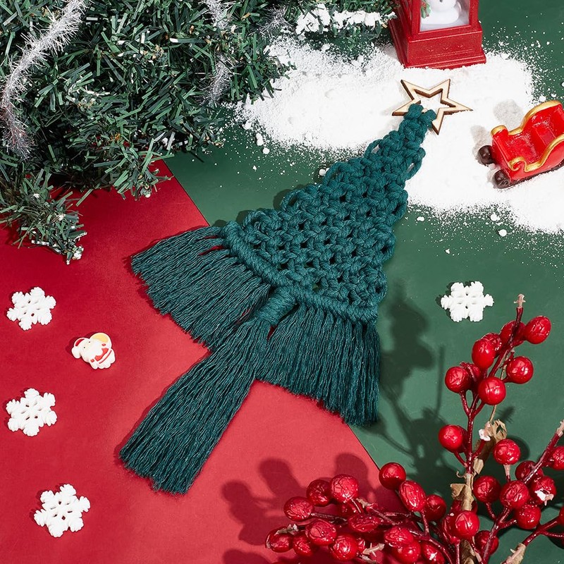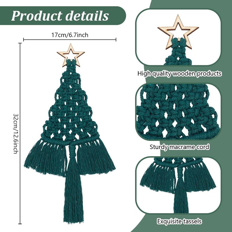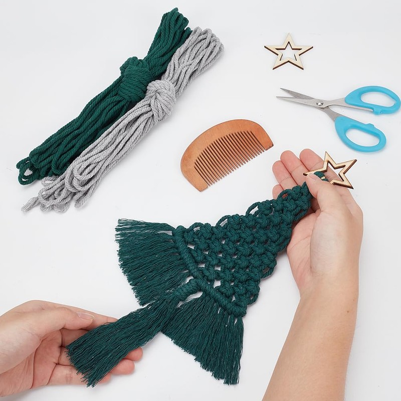 - Christmas Tree Macrame Kit: Package includes 4 colors cotton cord(15m/49.2 ft per color), 4pcs wooden stars, a comb, a tape measure.