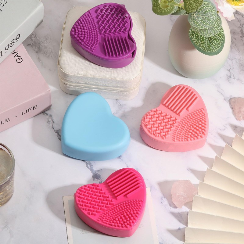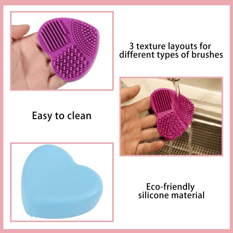 FREEBLOSS 4 x Reinigungspad Für Make Up Pinsel. Silikon Reinigungspad In Herzform Rosa Blau Rosa Lila 3.2" x 3" x 1"