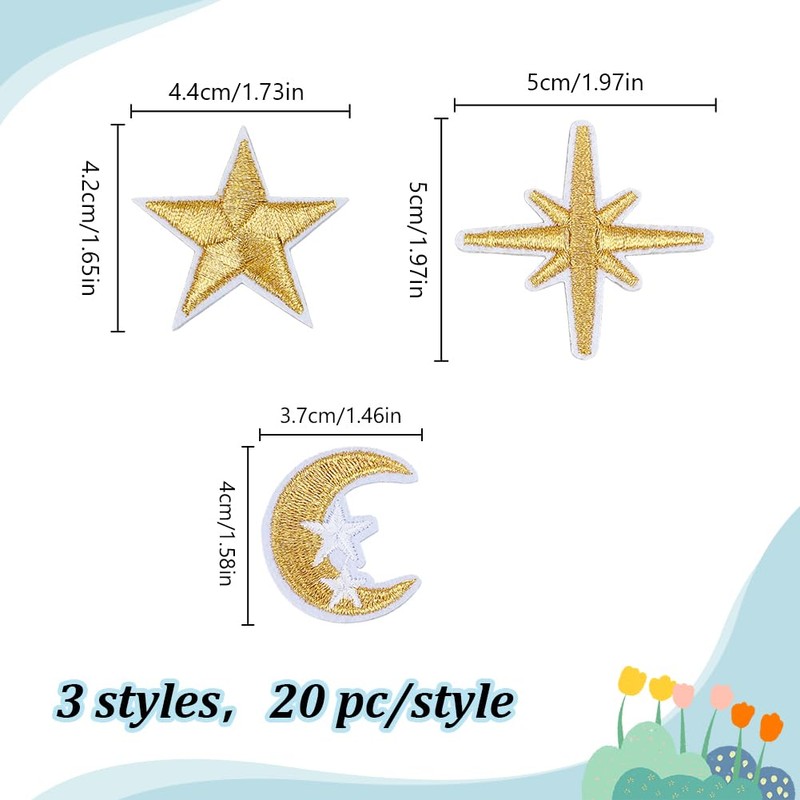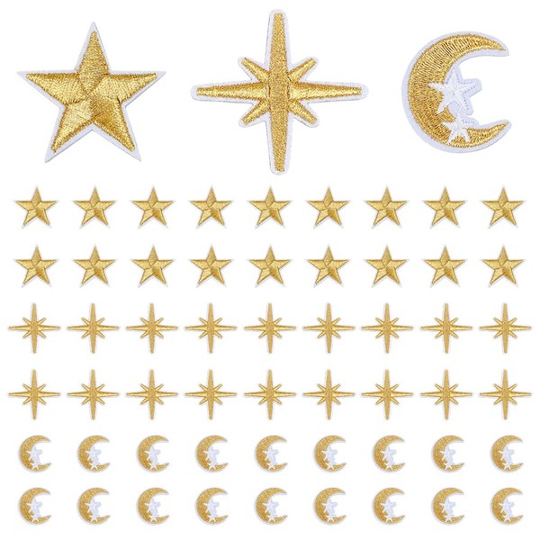 FREEBLOSS 60 Stück Bestickte Aufnäher Stern Stickerei Applikation 3 Stile Mond Zum Aufbügeln Bestickte Aufnäher Zum Aufnähen Für Kleidung Und Kleid Hut Jeans DIY Zubehör