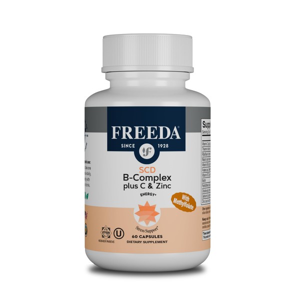 Daily Energy, Immune, and Stress Support with MethylFolate C Trusted by Sensitive Users Since 1928 Freeda SCD Stress B-Complex is a complete daily supplement combining all 8 essential B vitamins with Vitamin C, Zinc, Choline, Calcium, and MethylFolatethe active form of folate. This formula was co-developed to meet the needs of people following the Specific Carbohydrate Diet (SCD) and is ideal for those with sensitive digestion, food intolerances, or MTHFR gene variations. Key Benefits: Stress & Nervous System Support C Helps support a calm mood and healthy stress response Energy Production C Supports metabolism and helps convert food into energy Immune Support C Includes Zinc and Vitamin C to support immune function Skin, Hair & Nail Support C B vitamins support healthy hair and skin Bioavailable Folate C MethylFolate (L-5-MTHF) bypasses common folic acid absorption issues Clean & Safe for Restricted Diets C Including SCD Developed with Elaine Gottschall, author of "Breaking the Vicious Cycle," this formula is free of starches, fillers, sugars, and disallowed ingredients, making it a legal and trusted option for those following the SCD. It's also suitable for anyone looking for a clean, effective B-Complex supplement that's gentle on digestion. Formulated Without: Gluten, lactose, gelatin, starch, artificial flavors, or sugar. Vegan & Kosher Certified | Made in a GMP-Certified Facility in the USA Freeda has been trusted for over 90 years for clean, simple supplements tailored to special diets. This Stress B-Complex is ideal for those following SCD, paleo, or digestive health protocols. Take 1 capsule daily with food. Best taken with applesauce, yogurt, or a light meal.
