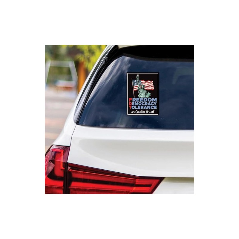 Freedom, Democracy, Tolerance, and Justice for All Protest Vinyl Sticker, Resist Hate Decal, Anti-Trump, No Kings Liberty Sticker, Resist Fascism Car Bumper Sticker, 6" x 4.5"