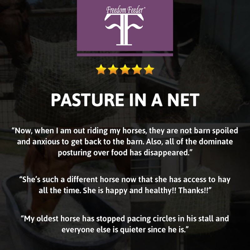- FREE FROM MEAL ROUTINES – Freedom Feeder nets are a way for you to be free from meal time routines, helping you and your horse live a happier and healthier life by reducing the anxiety and behavioral issues around meal times.