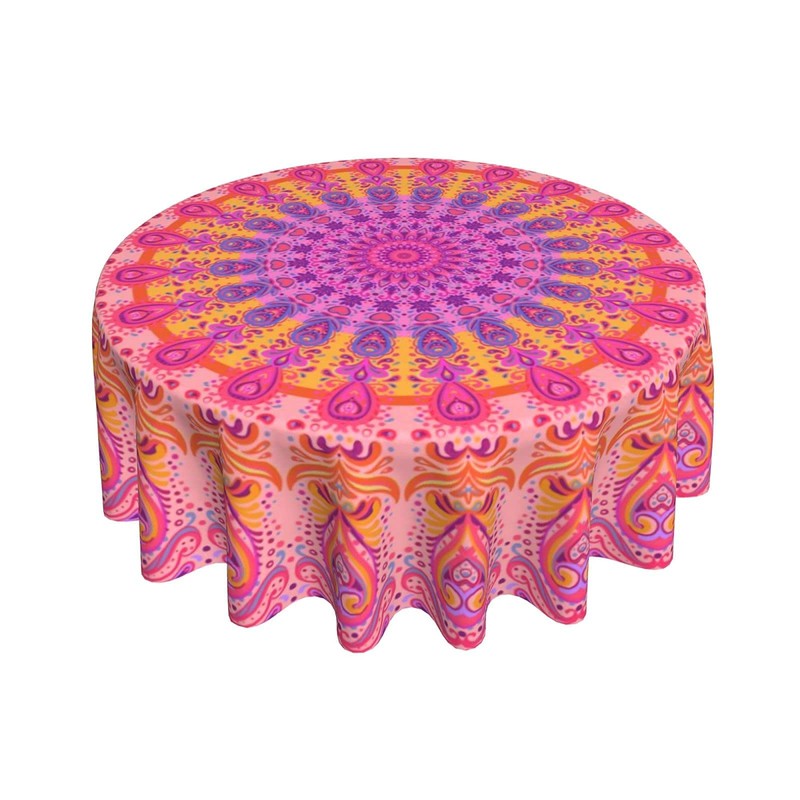 FREEHOTU Mandala Flower Round Tablecloth Thicken Desk Cloth Washable Table Cover Table Cloth for Kitchen Daily Dinning Party Tabletop Decor 60 Inch