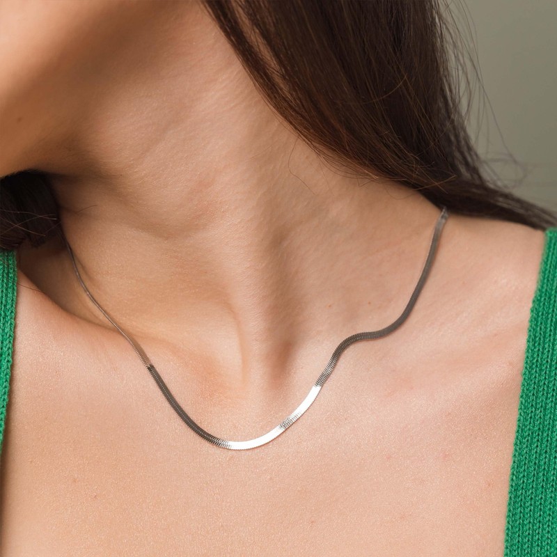 Freekiss 925 Sterling Silver Snake Herringbone Chain Choker Necklace for Women 16+2 Inch Adjustable Dainty Layered Choker Necklace Delicate Silver Jewelry Gift 1.9mm