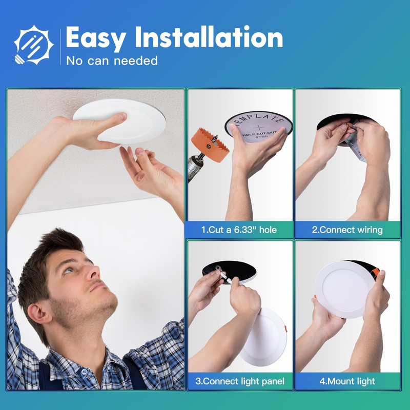 • Easy Installation: The low profile recessed lighting is suitable for retrofit and new decoration. And the installation can be completed in minutes. It only requires as small as 2 inches ceiling spaces, fits various ceilings, and joists. Recessed can is no longer a limitation for your choice.
