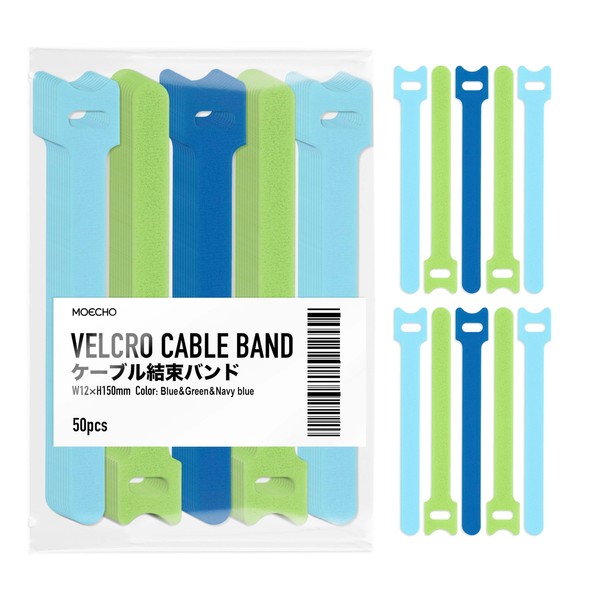 (Freely Adjustable, Repeatedly) Cable Band, Velcro Band, Cable Tie Band, Cable Tie, Binding Cord, Bundle, Organize, Wire Loop, Loop, Fixing (Blue, Green, Navy)