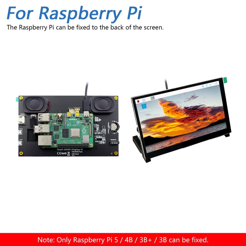 • For Raspberry Pi -> The Raspberry Pi can be fixed to the back of the screen. (Note: Only Raspberry Pi 5 / 4B / 3B+ / 3B can be fixed.)