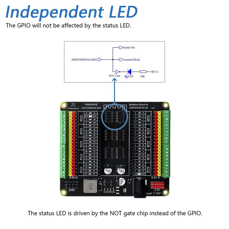 - LED independiente -> El LED de estado es impulsado por el chip en lugar del GPIO, por lo que el GPIO no se verá afectado.