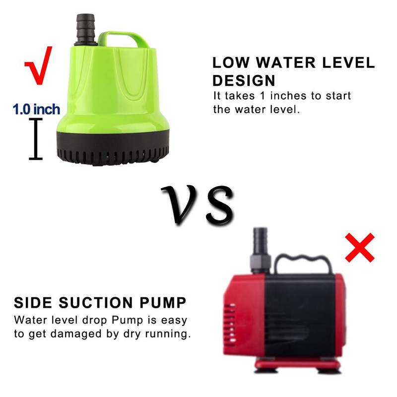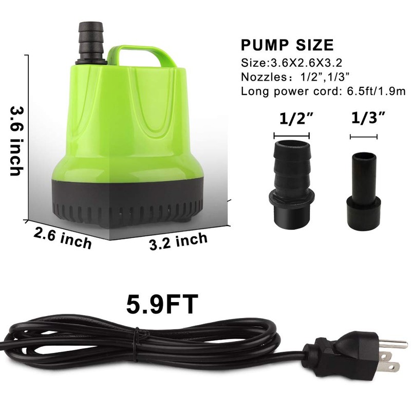 - ★Maximum flow rate: 160 GPH STRONG POWER and HIGH LIFT. Max Lift Height: 3.6 ft. 12 W high efficiency motor for energy saving.