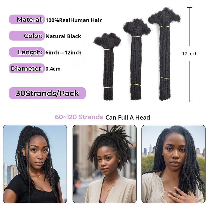 - Packing: 30 strands/pack with quality dreadlocks needle and interlocking too, can be trimmed to the length you want, usually 30-60 strands can make a full head