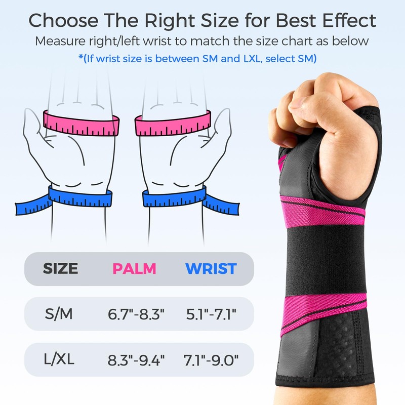 FREETOO FREETOO Carpal Tunnel Wrist Brace Night Support Fit Right Hand for Work, Pain Relief Wrist Splint for Tendonitis, Arthritis, Fit Women and Men, Wrist Stabilizer Brace for Sleeping (L/XL, Black/Pink)