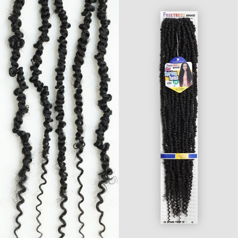 - Freetress Braid 2X Spring Twist 26" resembles the finished look of a Passion Twist and Spring Twists made with authentic Freetress Water Wave.