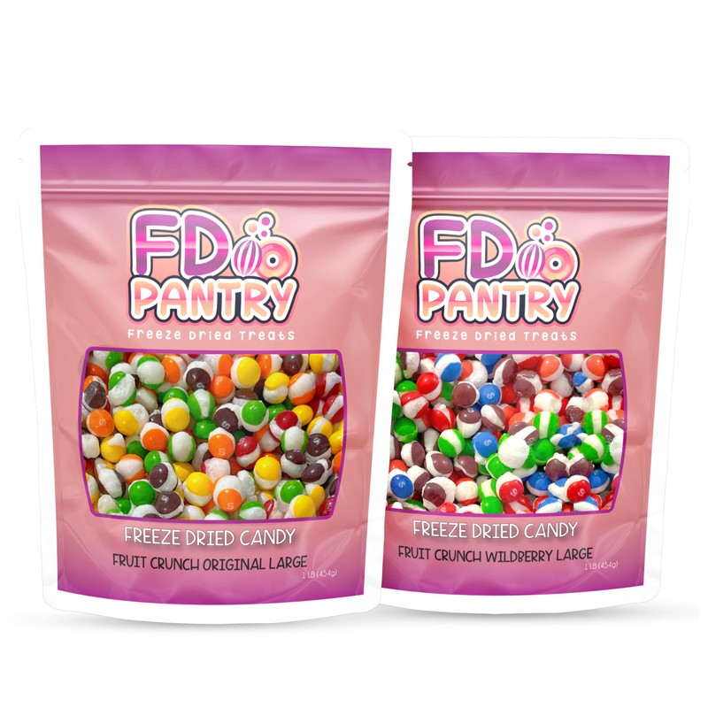 - Assorted Freeze Dried Candy Flavors: This bundle includes a delightful mix of Original (Strawberry, Orange, Lemon, Grape, Lime) and Wildberry (Berry Punch, Melon, Strawberry, Cherry, Raspberry) flavors. Experience a burst of fruitiness with each bite in our large 2x1lb pouches 2 Pounds total !