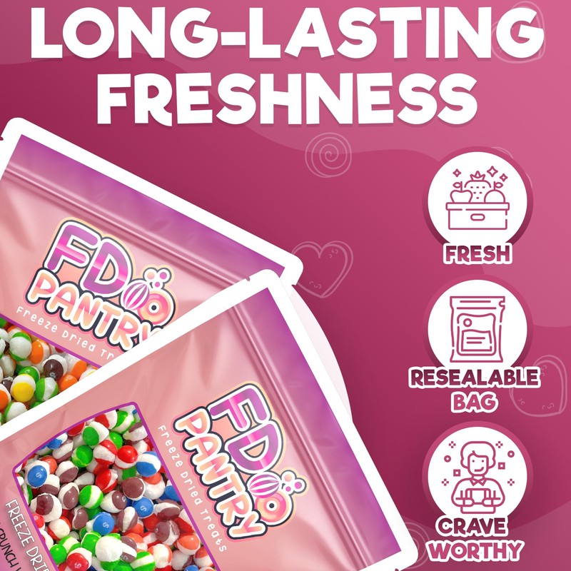 - Unique Freeze-Dried Candy Process: Step into the world of unique, dry candy with our innovative freeze-dried method. This cutting-edge technique removes moisture, preserving the intense flavors and creating a light, airy texture. Enjoy a unique, crunchy experience with our dry candy that locks in the delicious fruit flavors, ensuring a treat that won't stick to your teeth. Perfect for any event, our freeze-dried candies offer a novel snacking experience.