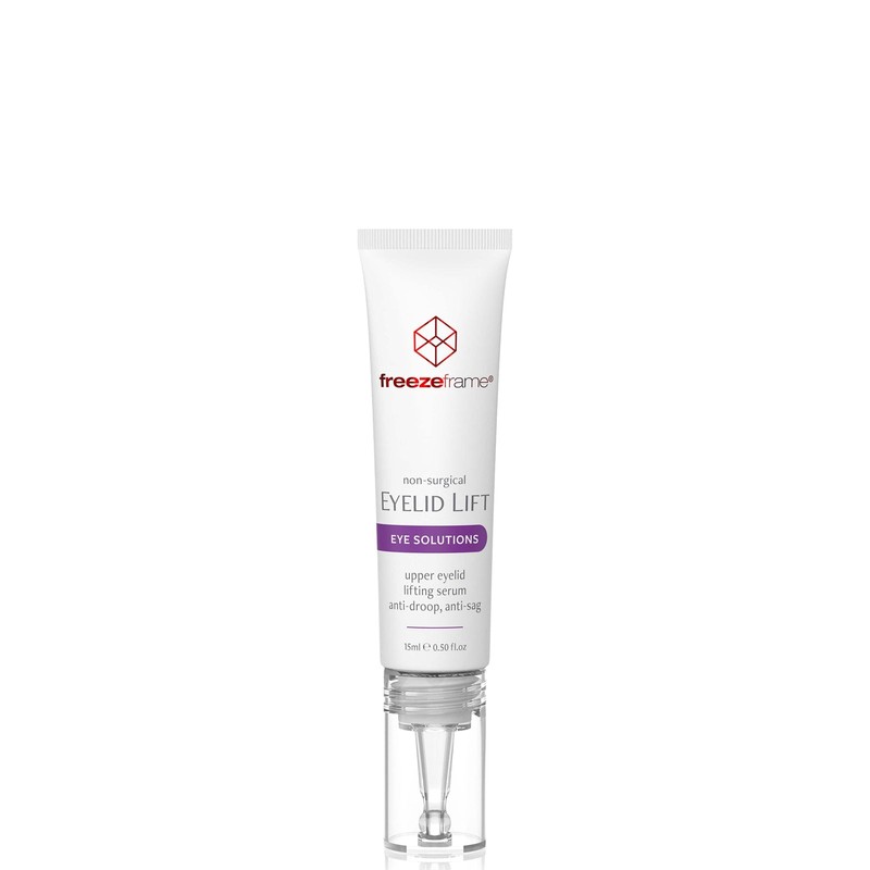 Non-surgical EYELID LIFT is a lightweight serum powered by breakthrough peptide technology to provide a dramatic lifting effect to sagging or hooded upper eyelids.
