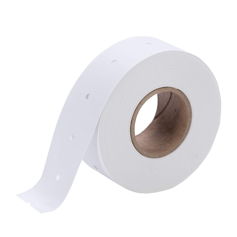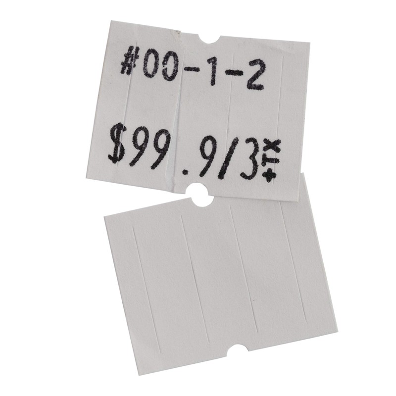 These labels come in a plain white color, which makes it easy for both customers and staff to quickly see the price label. They are backed with a strong, secure adhesive that sticks easily. There’s also a security slit in each label to prevent tampering.