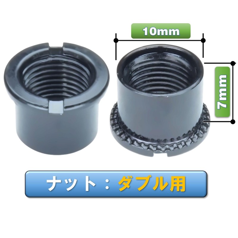 - 5 pieces for single use (bolt length 0.2 inch (6 mm), nut length 0.2 inch (5 mm)), 5 pieces for double (bolt length 0.3 inch (8 mm), nut length 0.3 inch (7 mm)), total of 10 pieces