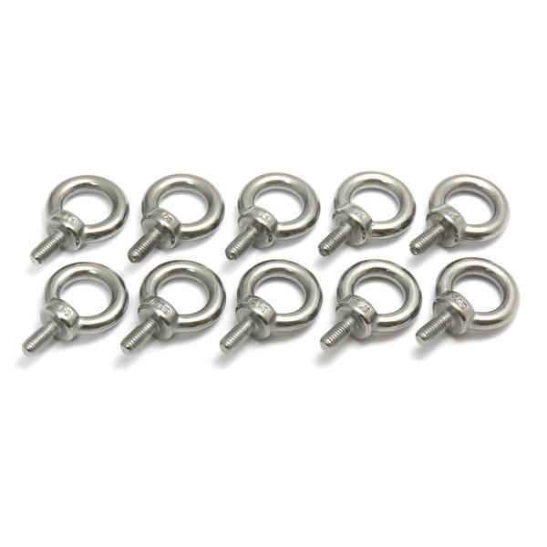 FregocS EBSM5L10-10p Eyebolts, M5 x L10, Stainless Steel, Convenient Set of 10