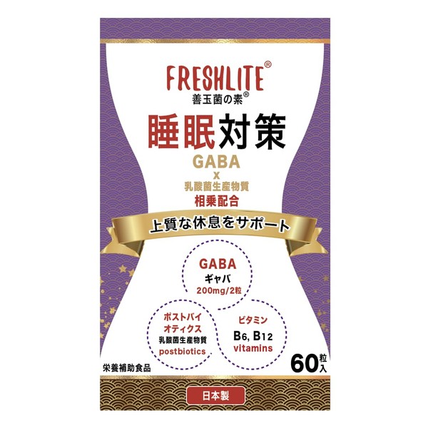 FREHSHITE 睡眠対策 | 高濃度90%大麦発酵GABA200mg+高純度の天然ポストバイオティクス +天然由來ビタミンB6、B12配合 | 上質な休息をサポート | 60粒入