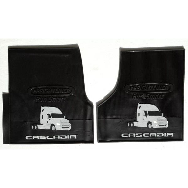 Freightliner Cascadia OEM Black Rubber Floor Mats 2Pc with Gray Logo 2008-2017