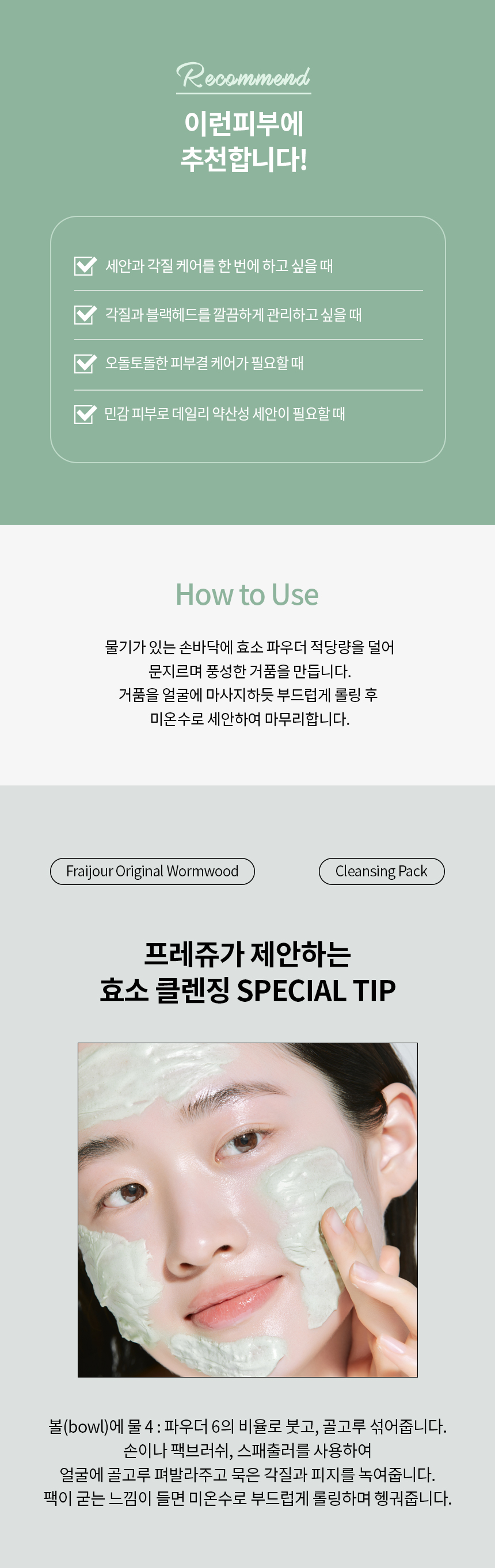 Freju Natural Mugwort Enzyme Cleansing Pack 80g / 프레쥬 자연약쑥 효소 클렌징 팩 80g