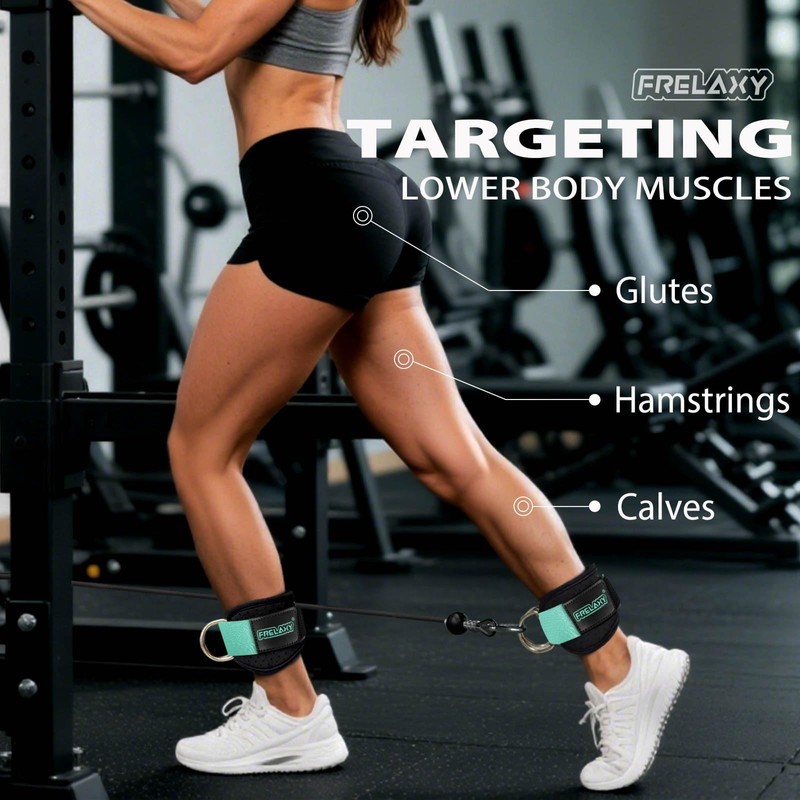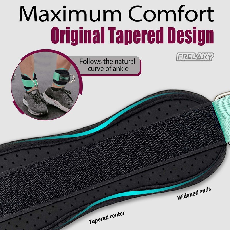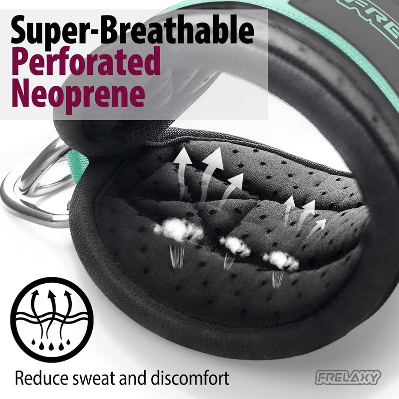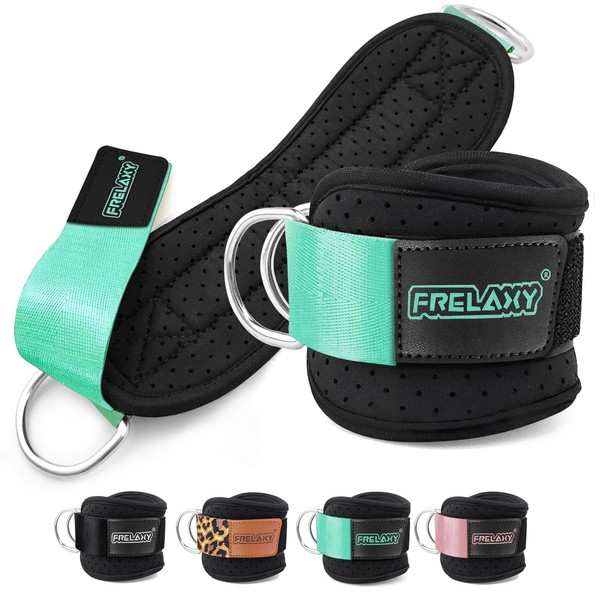 Frelaxy Ankle Straps for Cable Machine – Comfortable & Durable Leg Straps for Kickbacks, Glute Workouts, and Lower Body Exercises – Perforated Neoprene Padding & Tapered Fit (Pair, Mint)