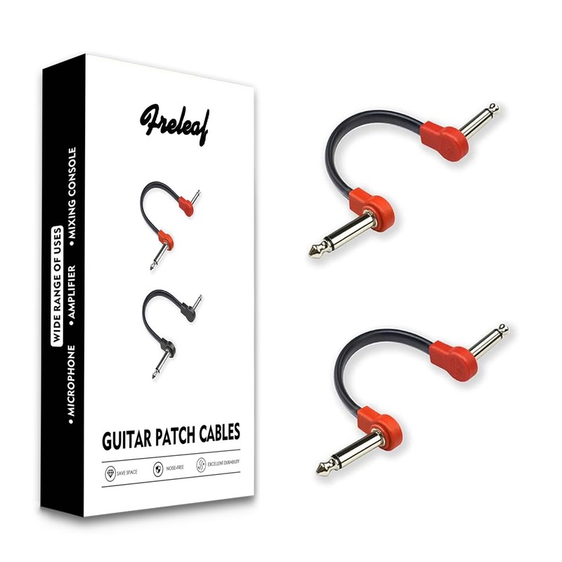 Freleaf Professional Flat Guitar Patch Cables, Noise Free, Save Space, 1/4" TS Right Angle for Guitar Effect Pedals, 6IN 2 Pack, Red