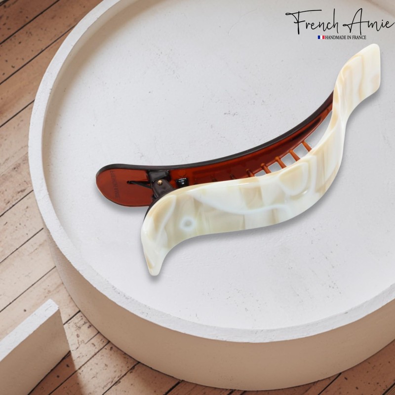 French Amie Duckbill 4" Celluloid Acetate Handmade Alligator Clip, Hair Clip for Girls, Beak Hair Clips for Styling Women Hair Accessories (Ivory)