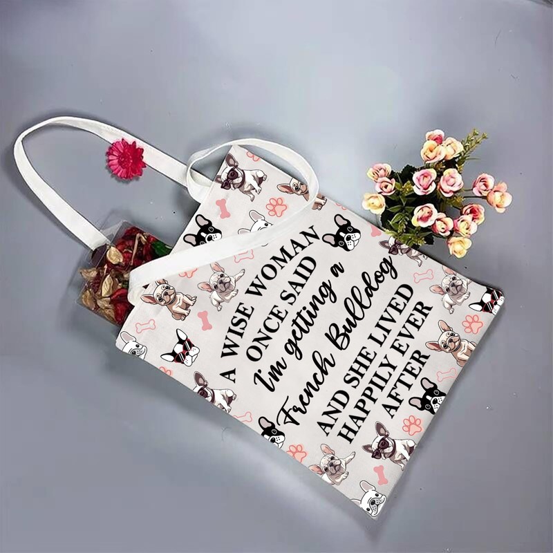 French Bulldog Gift Dog Mom Gift A Wise Women Getting a French Bulldog She Lived Happily Ever After Tote Bag Dog Owner Gift (C-french bulldog tote)