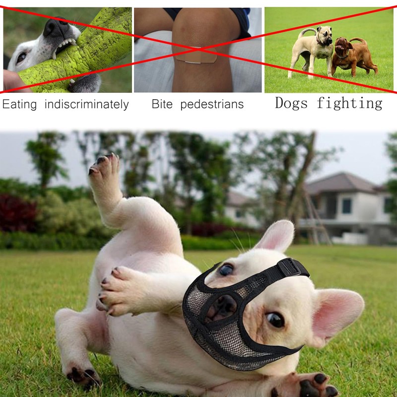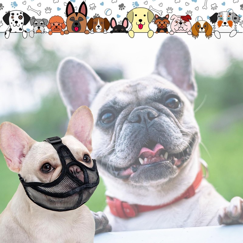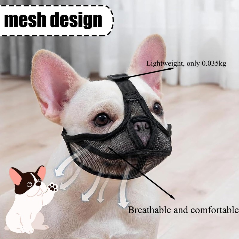 • Soft Material: The frenchie muzzle is made of breathable rubber mesh and polyester material. Bulldog masks are skin-friendly, soft and breathable, odorless and non-irritating, and the soft edges prevent rubbing on the dog's eyes and nose.