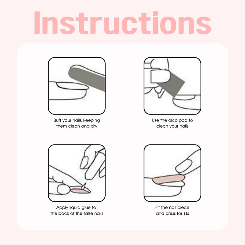 Step 4: Press stick on nails short on your own nails and hold for 10 seconds. Squeeze out all the air from the pasting area.