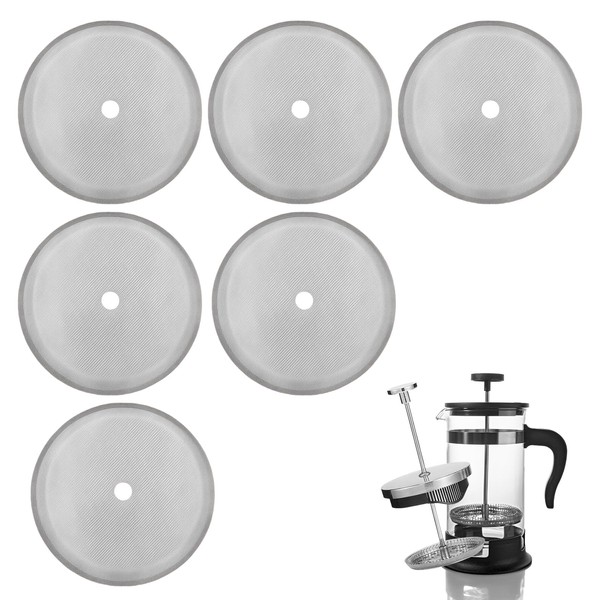 French Press Replacement Filters Stainless Steel Mesh Screen Universal 1000 ml, 34 Oz, 8 Cup Coffee & Tea Makers (6 PACK)