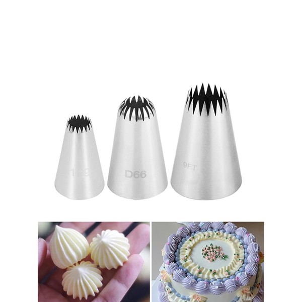 - Package Includes: Set of 3 star icing tips for frosting:199,D66,9FT pastry tip(also known as jumbo 869 piping tip),dishwasher available.