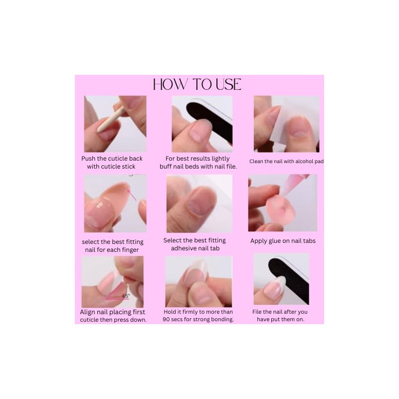 - ✅ 💅 Pre-Glued & Easy to Apply – Skip the salon! These stick on nails are pre-glued for instant application. Simply press and go, or use extra soft gel nail glue for a longer hold.