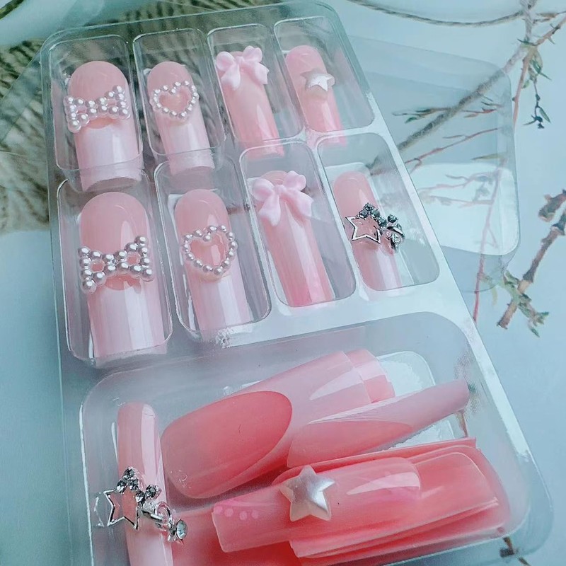 3.You can use other accessories to decorate your fake nails to create your favorite style.