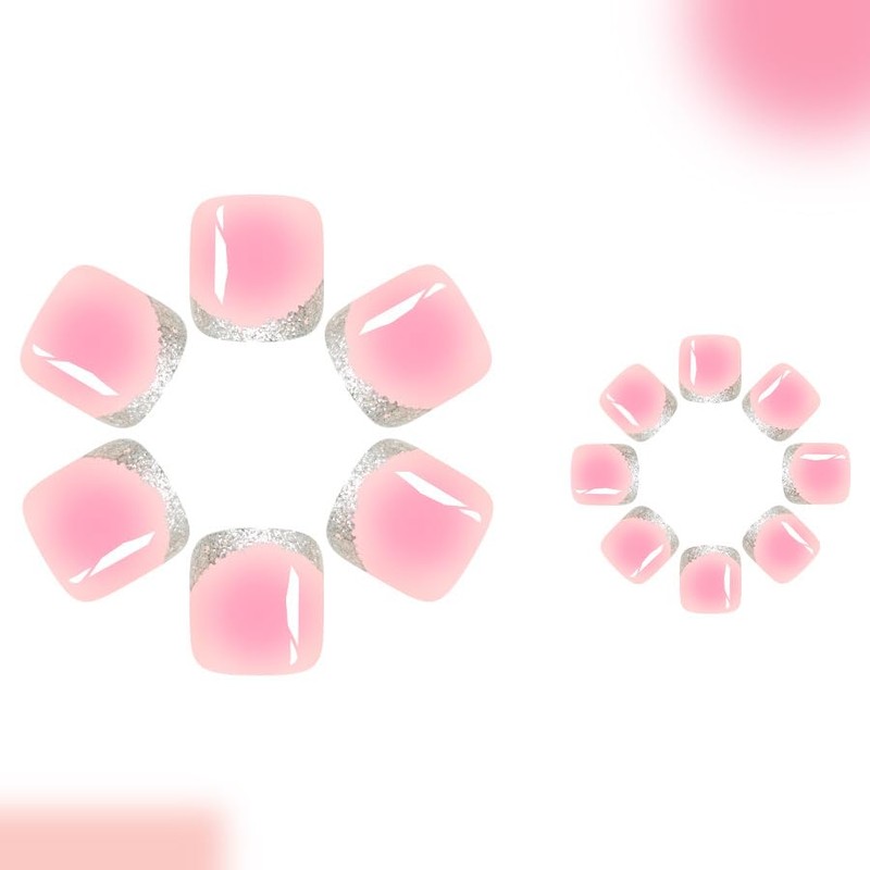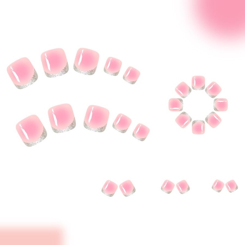 French Tip Press on Toe Nails Pink Fake Toe nails with Glitter Tip Designs False Toenails Square Glue on Toenails Nude Pink Stick on Toe Nails Glossy Acrylic Toenails Full Cover Artificial Toenail